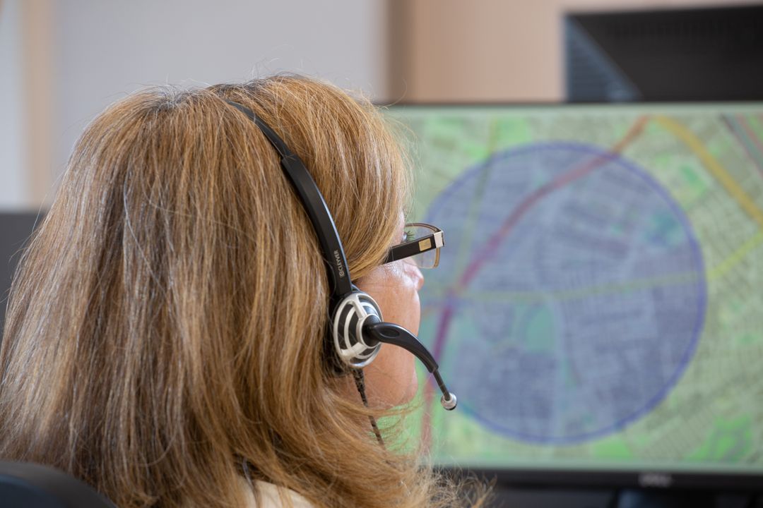 El dispositivo de Teleasistencia DomusVi conecta con nuestro equipo de profesionales, que geolocaliza y se comunica con el usuario para resolver la incidencia o emergencia.